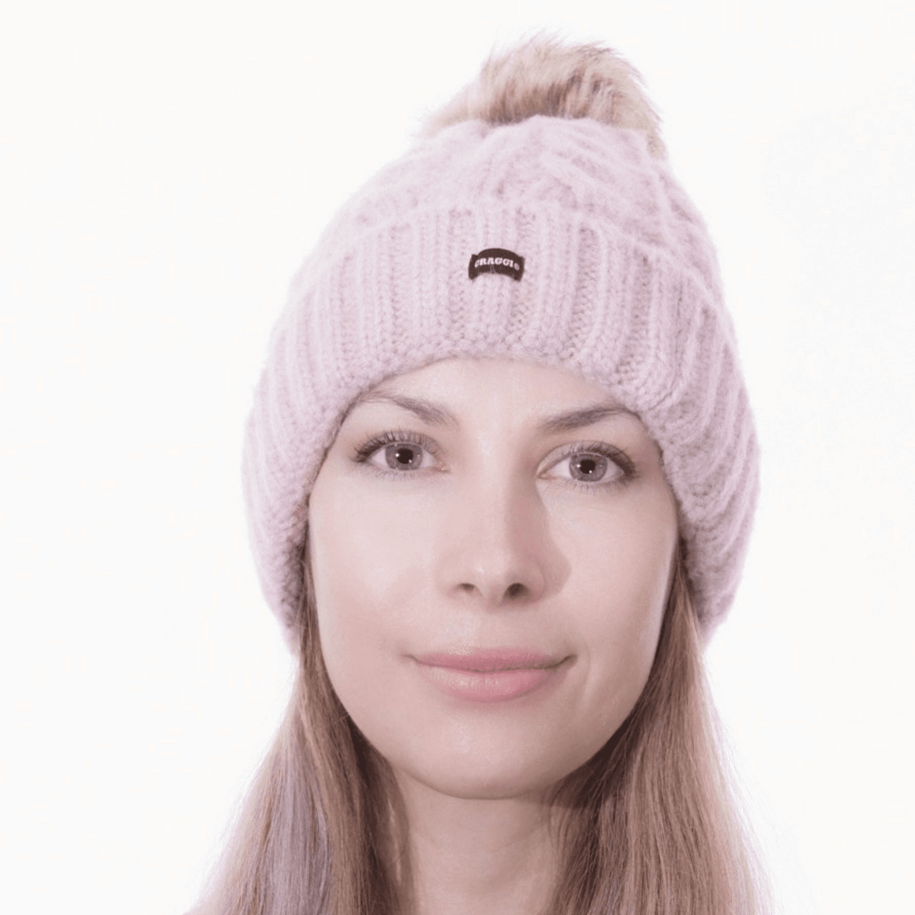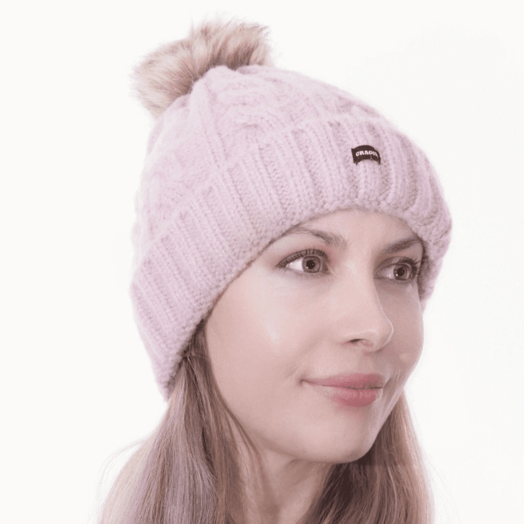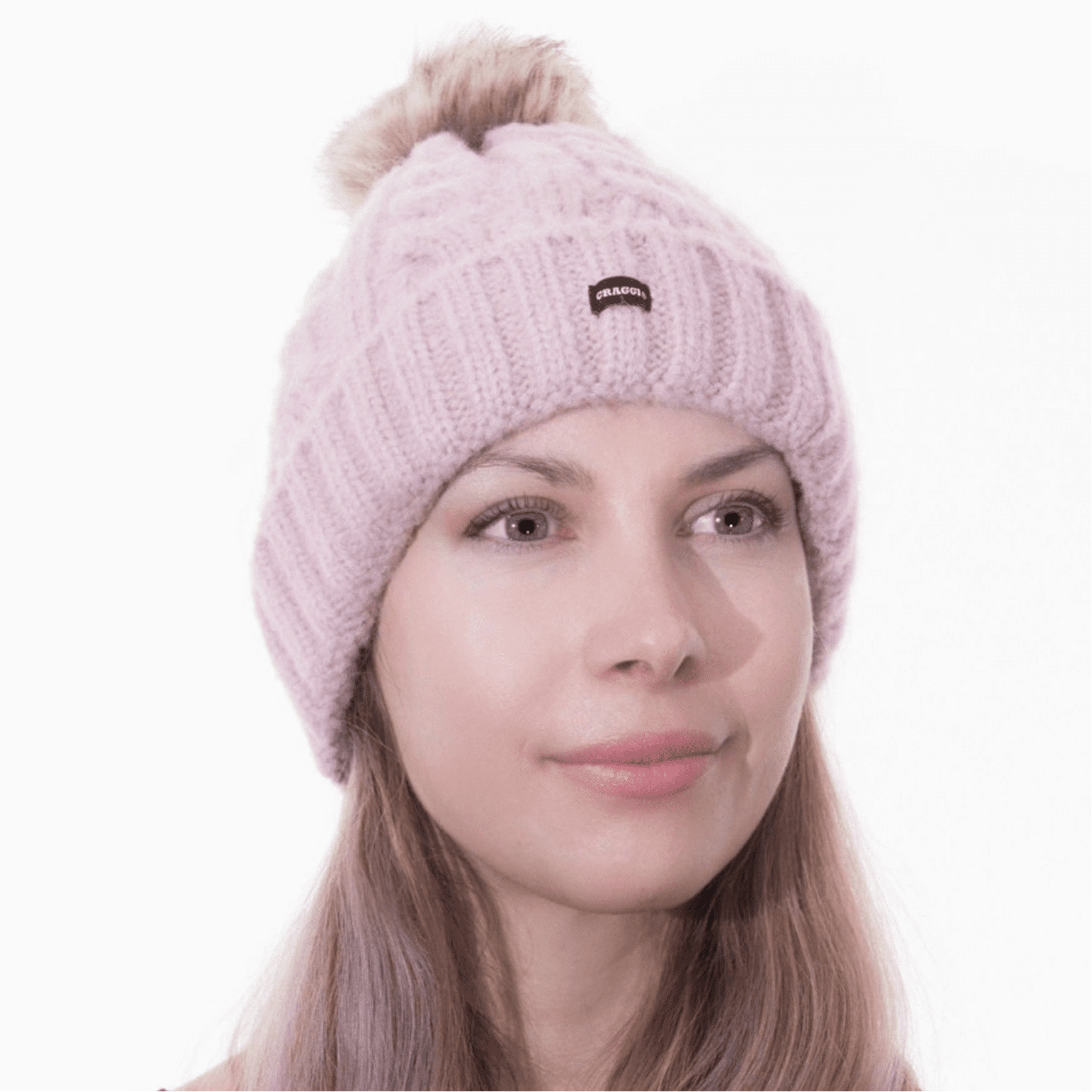 Bobble Hat Pink Knitted Pom Beanie Ski Hat